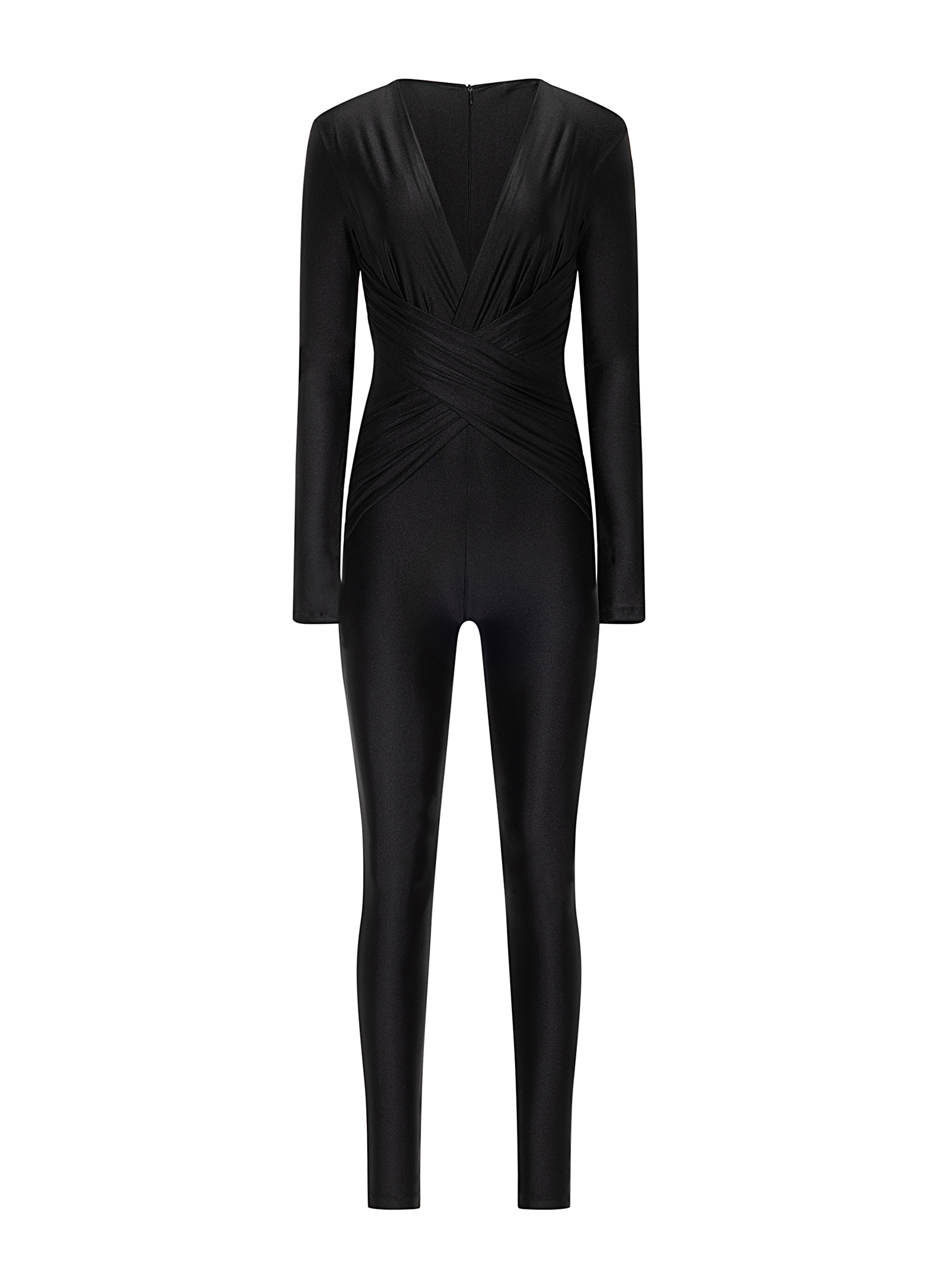 V-neck long-sleeve catsuit with draped detail